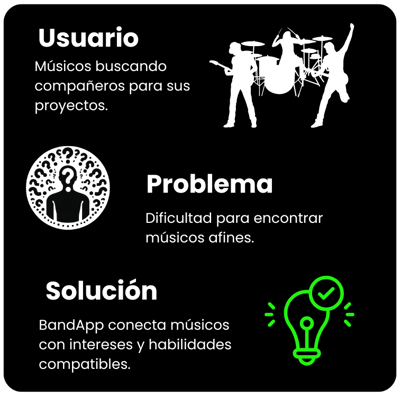 BandApp es la app que los músicos estaban esperando: un lugar para crear bandas, colaborar en proyectos y encontrar nuevas oportunidades. Diseñada con un enfoque fresco y práctico, BandApp conecta artistas de todos los géneros con estilo y creatividad.